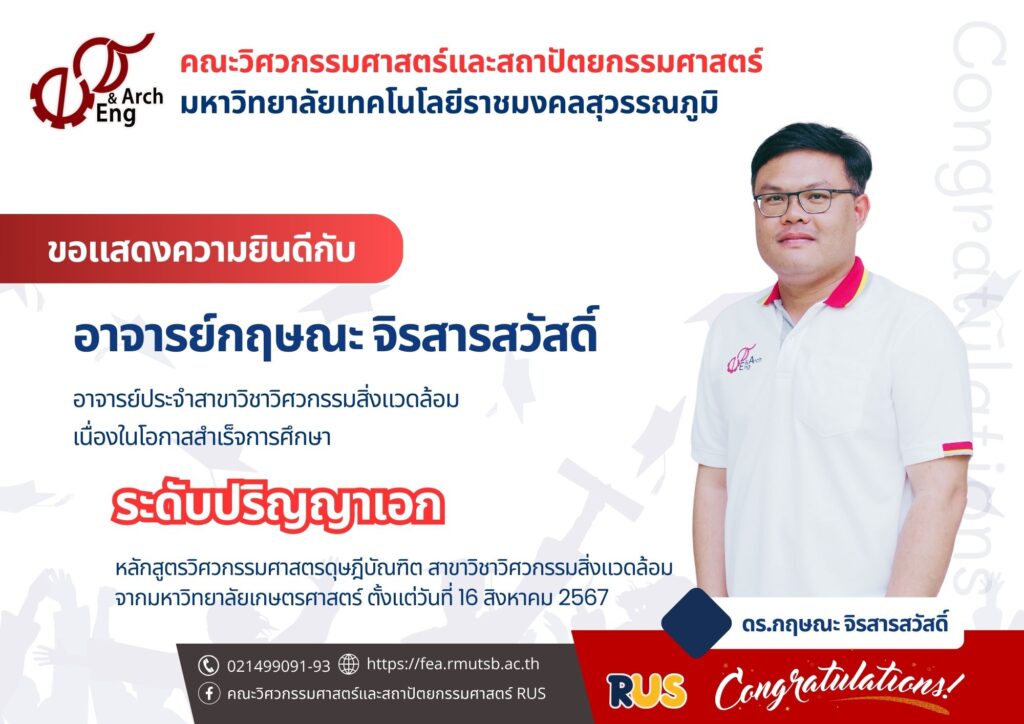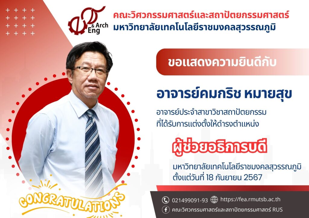 คณบดีคณะวิศวกรรมศาสตร์และสถาปัตยกรรมศาสตร์ Assistant Professor Patchara Kunjanakarn Dean of Faculty of Engineering and Architecture